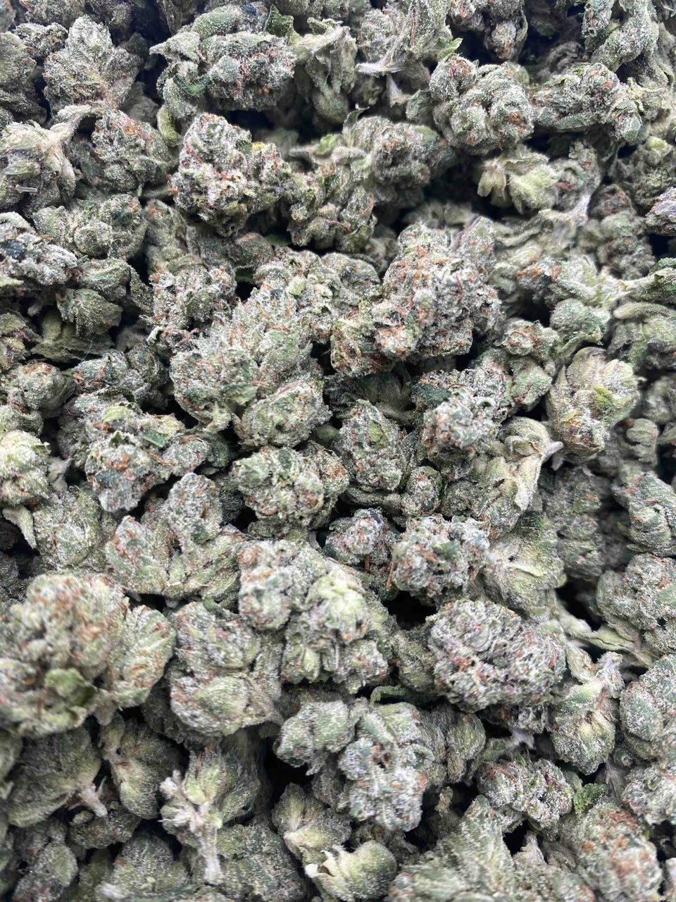 The Buy OG Strain is visually striking, with dense, trichome-rich buds that shimmer under light. Its dark green hues are accented with orange pistils and a thick layer of frosty crystals, signaling potency and quality.
